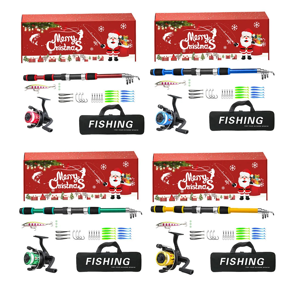 Fishing Lures Hooks Travel Pole Set Xmas Gifts for Men