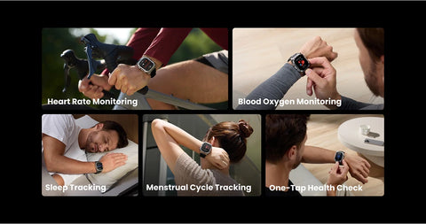 Metrics measured: Heart Rate Monitor, Women's Health Monitoring, Blood Oxygen Monitor, Sleep Monitor